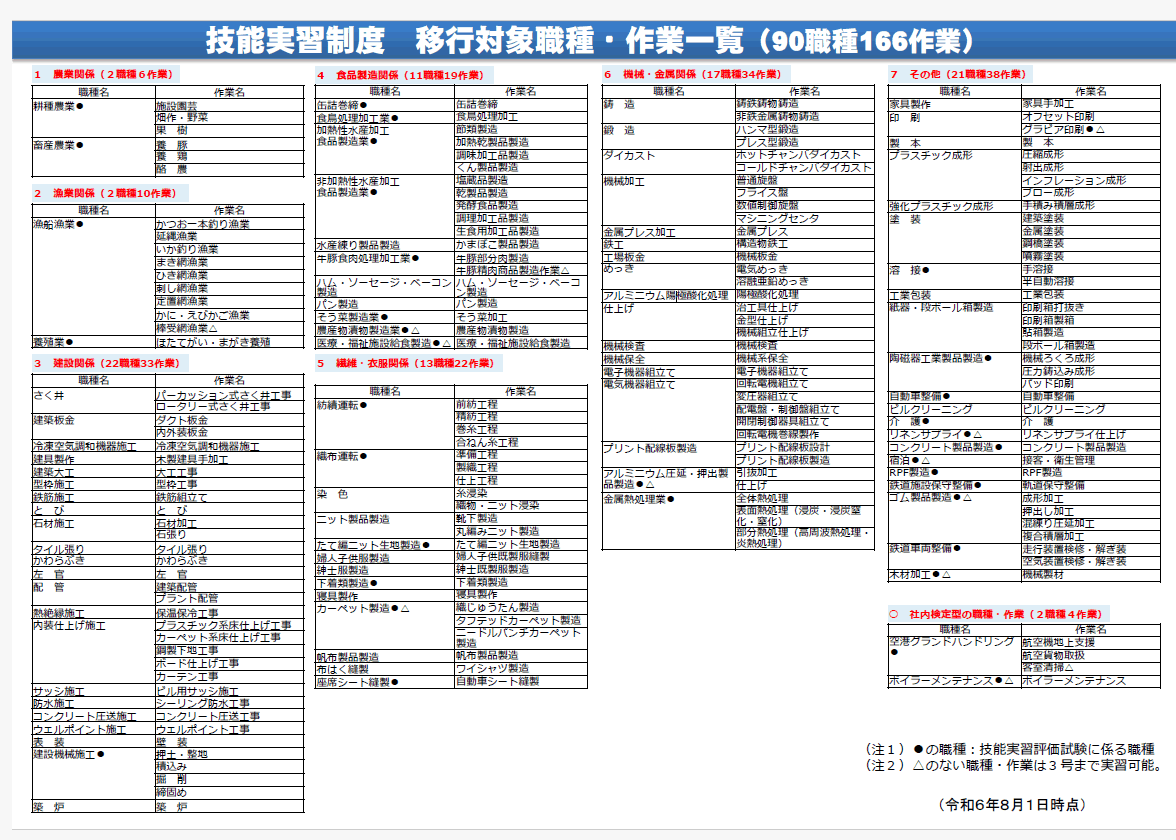 1号から2号移行時に「試験」に合格する必要があります。この試験がある職種が「技能実習2号移行対象職種」となります